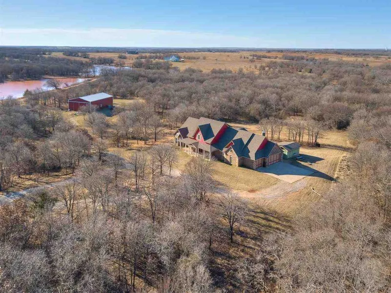 45 fantastic acres with a 40x60 insulated shop with central heat and air surround this 4.700 sq ft custom built home. This property is exquisite. Home boasts 4 bedrooms and could easily be 6 bedroom, 3 1 /2 bath, custom woodwork, office, library with 13ft floor to ceiling book shelves. Master closet is an F5 rated safe room. 3 car garage,theatre room and so much more. A complete detail sheet with aerial is available upon request.