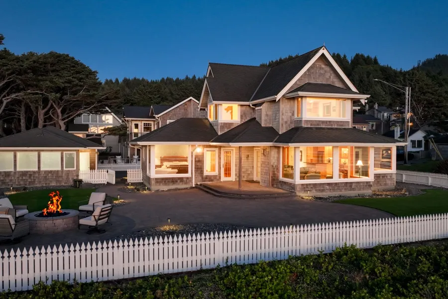A rare oceanfront jewel in Cannon Beach! This extraordinary double corner lot boasts 100 feet of premier ocean frontage with direct beach access and commanding panoramic views, including the world-famous Haystack Rock. Designed for refined coastal living, the 4-bedroom, 3-bath residence offers expansive living and entertaining spaces oriented to the sweeping Pacific Ocean. An oversized garage and generous driveway provide ample parking for guests, while the quiet setting ensures privacy and tranquility. A true legacy property, blending elegance, comfort, and an unrivaled location along Oregon's most coveted shoreline.