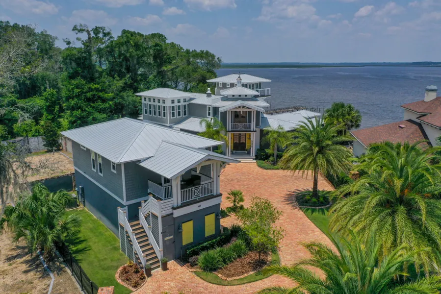Ecquisite Waterfront in the Amelia Island market. Views from nearly every room in this 2018 custom home fronting the Bells River. Fabulous 5,700-square foot residence, plus attached 4-bay garage with 800-square foot accessory dwelling above. Features antique brick accents, metal roof, Covestro technology for energy efficiency, Hardi-shake siding, concrete masonry plus 2"x6" upper framing and PGT windows. Outstanding kitchen open to a large family room with 19-foot soaring ceiling, brick pub and access to the covered and screened VERANDAH with summer kitchen and fireplace. Infinity-Edge pool overlooks deep water...truly a breathtaking setting. Excellent maintenance and condition by this original owner, multiple fireplaces, multiple HVAC's, tankless water heaters, luxurious primary bedroom suite, architecturally interesting ceilings, plus wood, stone and tile floors throughout (no carpet in this home). The outdoor enthusiast will love it - schedule your personal tour to preview Southern Cove today!