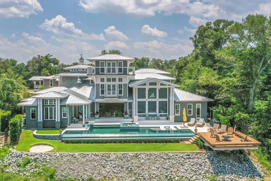 Exquisite Waterfront in the Amelia Island market. Views from nearly every room in this 2018 custom home fronting the Bells River. Fabulous 5,700-square foot residence, plus attached 4-bay garage with 800-square foot accessory dwelling above. Features antique brick accents, metal roof, Covestro technology for energy efficiency, Hardi-shake siding, concrete masonry plus 2"x6" upper framing and PGT windows. The outstanding kitchen opens to a large family room with a 19-foot soaring ceiling, a brick pub, and access to the covered and screened VERANDAH with a summer kitchen and fireplace. The INFINITY-EDGE pool overlooks deep water...truly a breathtaking setting. Excellent maintenance and condition by this original owner, multiple fireplaces, multiple HVACs, tankless water heaters, luxurious primary bedroom suite, architecturally interesting ceilings, plus wood, stone, and tile floors throughout (no carpet in this home). The outdoor enthusiast will love it - schedule your personal tour to preview SOUTHERN COVE today!