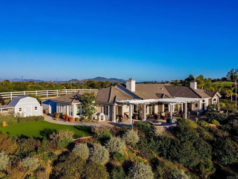 This gated estate welcomes you with a stunning palm-lined driveway and offers exceptional space and comfort. Inside, you’ll find 4 bedrooms, 3 bathrooms. The spacious primary suite features a luxurious bath with a jetted tub, oversized shower, fireplace and walk-in closet. A beautiful mosaic inlay accents the travertine flooring in the entry, leading to a living room with a dual-sided fireplace shared with the dining area. The chef’s kitchen boasts a large island, generous storage, and a premium Viking appliance package. Two additional bedrooms share a Jack-and-Jill bathroom. A well-equipped laundry room with utility sink and appliances (included) adds convenience. Additional highlights include wide hallways with built-in storage, central vacuum system, and a 3-car garage. Outdoors, enjoy the paver patio with firepit, artificial turf for low-maintenance entertaining, and two large sheds—ideal for storage or possible ADU use. Ample parking with a spacious driveway and side yard for boat or RV. Fully fenced, with propane, septic, and city water.