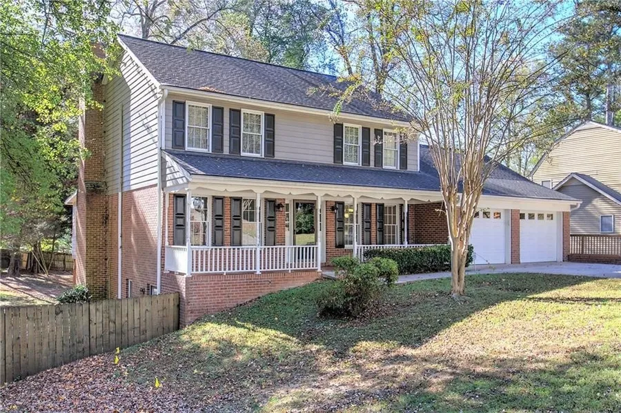 PRIME LOCATION - Welcome to 2864 Holly Oaks Dr, a charming traditional home nestled in East Cobb on nearly half an acre. Perfectly situated near the Davis Rd / Holly Springs roundabout, this home offers unparalleled convenience with walking distance to a variety of shopping, dining, and local amenities. Enjoy easy access to the Mountain View Aquatic Center, the Public Library, and some of the top-rated schools in Cobb County: Mountain View Elementary, Hightower Trail Middle, and Pope High School. This 2-story traditional home boasts a thoughtful floor plan, starting with the rocking-chair front porch. Inside, you'll find an entrance foyer, formal living and dining rooms, a cozy breakfast area, and a kitchen that opens to a fireside family room. The sunroom is bathed in natural light and leads out to an expansive deck, perfect for entertaining, with stairs that descend to a fully fenced backyard. The main level also features a kitchen-level, 2-car garage with bonus storage, a pantry, and a convenient linen closet in the laundry room. Upstairs, the home is designed with a split bedroom layout. The private primary suite includes a spacious walk-in closet and a large en-suite bathroom, while two additional bedrooms share a full hall bath. The finished basement offers a wealth of possibilities. With some updates to flooring and lighting, it can be transformed into a versatile space ideal for a multi-generational family, in-law suite, teen retreat, or even an income-generating apartment. The basement includes a second washer/dryer hookup, a recreation room with wet bar potential, a full bathroom, bedroom, storage room, and a kitchenette (with existing counters and sink, plus electrical connections for a stove). The expansive patio at the basement level spans the width of the home and connects to a convenient walkway leading up to the driveway.