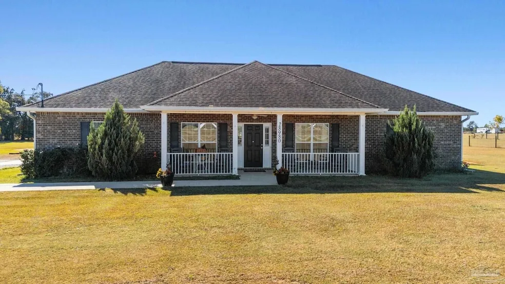Enjoy country living on this beautiful 4.25-acre property in Elberta, complete with a sparkling pool and plenty of room to spread out. This 3-bedroom, 2-bath brick GOLD FORTIFIED home features an open, split floor plan with a spacious living area, granite countertops in the kitchen, and a mix of LVP in living areas and carpet in bedrooms. A bonus room offers endless possibilities perfect for a home office, guest suite, or entertainment space. Gutters are around the house and there is a Generac whole home generator powered by propane gas. Step outside and enjoy wide-open views and an inground pool. Plenty of storage with a workshop (with 2 rolling doors) and a RV/Boat Carport ideal for equipment, tools, or outdoor toys. This property delivers the best of country living with easy access to town, beaches, and the Gulf Coast lifestyle. See Feature Sheet for more details! Buyer to verify all information during due diligence.