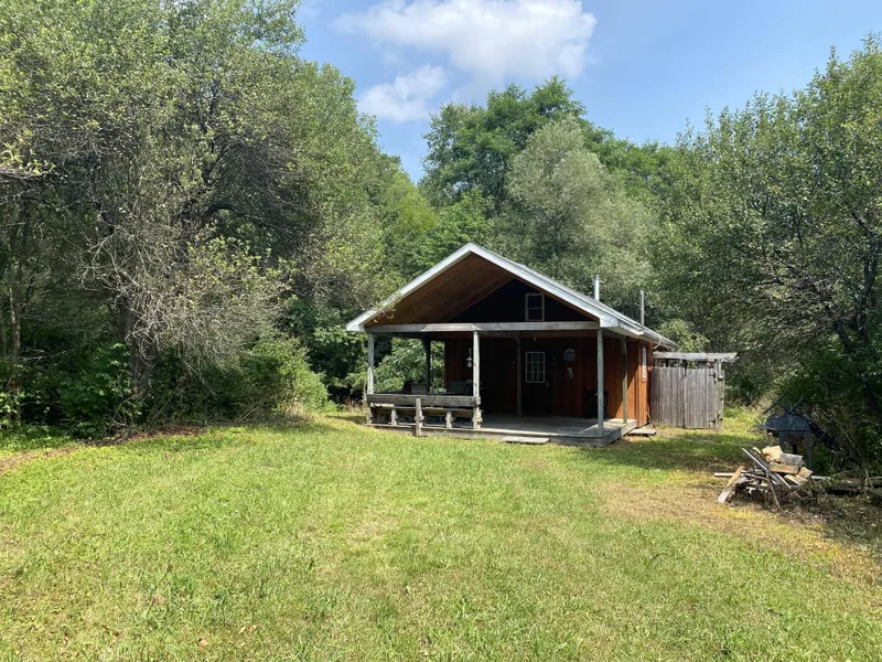 New York mostly wooded land with turn-key camp, stream, pond, food plots, tree stands/box blinds and all rights for sale. Quaint, turn-key secluded off-grid cabin set on the banks of Twentyeight Creek is the perfect getaway for family and is ideal for the hunters. The cabin is a rustic board & batten, 700 sf structure with a loft. The interior is well done with pine flooring, birch walls and tongue & groove pine ceilings. It has one bedroom with two beds, a sleeping area off the main living room with 1 bed and 2 beds in the loft with room for more. The cabin lighting and fans are run on solar. Electric is available at the road, but solar is what currently powers the structure. There is a composting toilet in the bathroom. There is no water well or septic. A woodburning stove provides the heat when the cooler temps prevail. The cabin comes completely furnished with all furniture, utensils, pots, pans, cooking stove, etc. There is also an outdoor propane-fired shower. A 12’x16’ shed in good condition is also included. The property is a wonderful mix of woods, brush and transition, scattered apple trees and open patches. The seller has installed two food plots for deer and there is plenty of room for more. Four elevated box blinds and multiple portable ladder stands are found in the best hunting locations and all will transfer with the property. The forest is comprised of oak, maple, hemlock, beech, birch and more, providing excellent cover and food for a variety of wildlife. No timber harvesting has occurred here in a very long time and all timber rights do transfer. There are plenty of interior trails ideal for hiking, ATV’ing and certainly for hunting. The terrain is gentle and easily walked. The main trail leads to a nice, clear water ½ acre, 14 foot deep pond near the back of the property that is currently stocked with bass, bluegill and some perch, ideal for making memories with the kids and grandkids. Sit on the 18’x 20’ covered deck and listen to the stream and the sounds of the resident birds and wildlife in this quiet, peaceful area. Just bring your clothes, food, camera and hunting implements of choice and be ready to relax, unwind and enjoy all that this property has to offer! There is a gas well on the property and all oil, gas, mineral and timber rights transfer. Free gas is available from the well and could be connected to the cabin if you choose to do so. NYS Land is only 1.3 miles away and the area snowmobile trail system is 0.6 miles east of the property on 28th Creek Road.