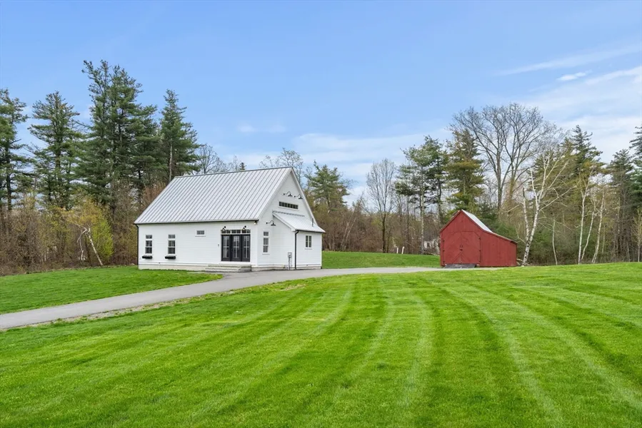 Introducing a modern farmhouse cape style home designed with an open concept and soaring ceiling heights. Quality finishes abound, from cement siding to spray foam insulation, engineered hardwood, and tile. The 1st floor showcases an impressive kitchen with a custom cathedral ceiling, oversized concrete island, quartz countertops, ss appliances, and a farmhouse sink. The living room, seamlessly connected to the kitchen, features walls of windows and a convenient built-in drop zone. A real first-floor primary suite boasts a WIC and a private ensuite with a tiled walk-in shower and double vanity. Completing the main level is a charming office with a built-in desk, a 1/2 bath, and laundry. Ascend the modern cable railing staircase to additional bedrooms (2) and a beautiful full bath also with tile and quartz. Outside, enjoy the expansive 2 acres of green space with captivating views, accompanied by an oversized custom-built shed. County dream living with its meticulous craftsmanship!