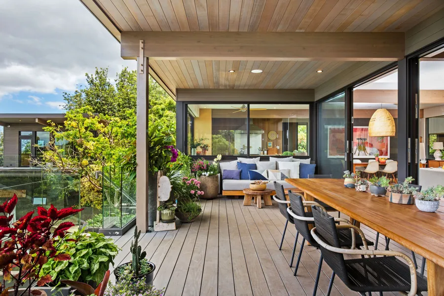 Welcome to 29 Kolonahe, an architectural masterpiece situated in beautiful Upcountry Maui. Designed by renowned California architects Marmol Radziner and built by Maui’s esteemed John Cahill, this stunning custom home and property effortlessly integrates mid-century modern architecture with lush natural surroundings. Marmol Radziner's attention to detail is evident in every aspect of this iconic estate, which boasts clean lines, an open floor plan and an abundance of natural light. The gated grounds include a spacious main home with state-of-the-art appointments and features, a guesthouse, a saltwater pool and jacuzzi that float above a verdant ravine, and professional art and music studios. Floor-to-ceiling Fleetwood doors and windows and wraparound covered decks are perfectly suited for entertaining and indoor/ outdoor living on Maui. The estate extends across the ravine to include an adjacent property with a large 3 bedroom cottage. With its blend of innovative design, breathtaking bi-coastal views, and meticulous native Hawaiian landscaping, 29 Kolonahe presents an opportunity to indulge in the best of Hawaii's natural beauty on the island of Maui.