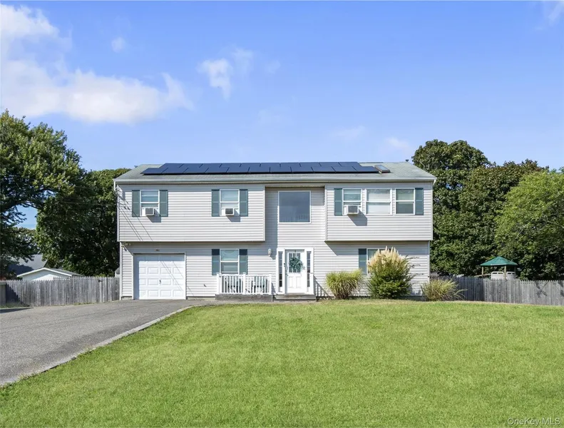 This expansive hi-ranch was built in 2003 and is ideal for multi-generation living or house-hacking in a prime location. Possible mother/daughter or legal accessory apartment (with proper permits), less than a half mile from beautiful Bellport Bay and splash park, and less than 2 miles from Smith Point's ocean beach and marina. Main floor features 3 bedrooms and 2 full bathrooms with primary en-suite, hardwood floors, formal dining room, laundry, full attic and large windows and skylights that provide an abundance of natural light. Ground floor boasts lots of extra living space and second laundry area, plus an outside entrance. Solar panels make electric bills extremely low. Fully fenced backyard with shed is spacious and includes a floating deck and large gazebo/pergola. More than ample parking with a giant triple-wide driveway; a perfect place for your boat and trailer in the winter months. Taxes under 9k. Ask me about the brand new $115 million Smith Point bridge set to begin construction soon, or the downtown revitalization project less than 2 miles away, also set to begin construction soon!