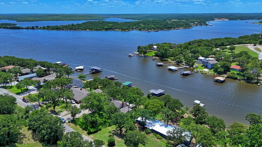 LAKE HOME Welcome to this spacious 2 story, 5 bedroom, 3.5 bath, 2 car garage, brick home. It offers a large kitchen with adjoining dining area, expansive living area includes with a fireplace and big windows allowing wonderful views of the lake. Outside is a large concrete patio with a wonderful tree shaded yard with sprinkler system. The private covered dock with a boat slip and 2 watercraft docks. The property is located just a cart ride away from the The Top of Lake Golf Club.