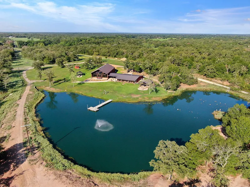 BIG CREEK RANCH is just minutes to TEXAS A&M and LAKE SOMERVILLE - There's not another one like this - A relaxing retreat that has been meticulously cared for. The MAIN HOME together with the GUEST HOME/LODGE have a combined +5,150 SF of living area with a beautiful 70 acre high fenced recreational property as a backdrop and an adjoining +/- 37 acres of open range wildlife. THE LAND has beautiful scattered hardwoods with nice wooded areas and is full of deer roaming in the background of your lake view! Multiple ponds on the property with the main lake stocked and ready for "off the pier" fishing. THE HOMES: The main house (4 bedrooms, 3.5 baths) is open and warm with extensive wood and rock accents. The home has a rustic style with modern touches. The Guest house/lodge/game area (3 bedrooms, 2 baths) is uniquely finished with beautiful wood and iron trim but still has a clean contemporary style. THE LIFESTYLE: Outdoor living offers over 1,000sf covered kitchen/grill/dining area - equipped with stainless appliance package, large sink, custom BBQ pit, large screen television with sound system, additional entertaining area includes large rock patio area with built-in stone fire pit. The property is a wonderful destination spot for family and friends with proven income potential as an event venue. BIG CREEK is the perfect place to call home for the weekend or forever!