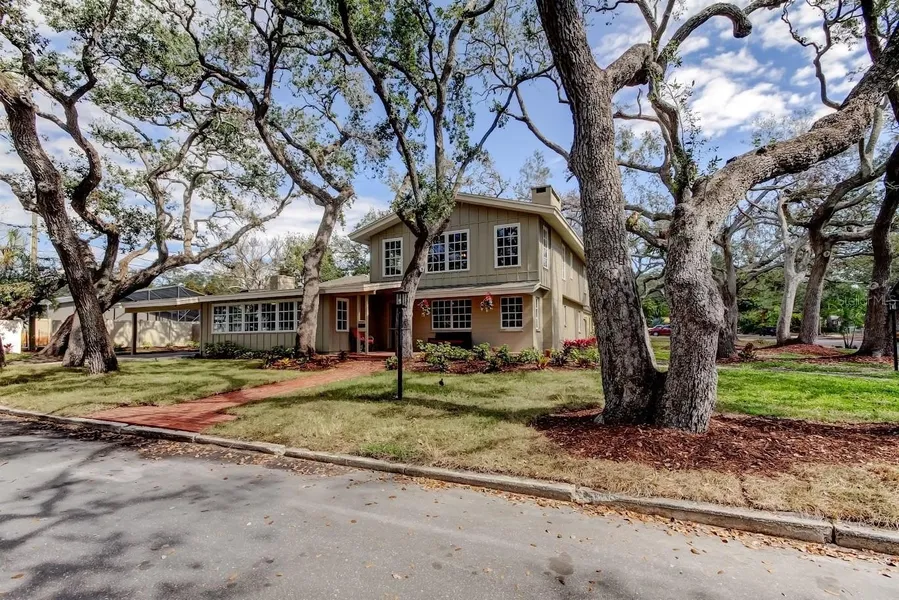 One or more photo(s) has been virtually staged. Designed for those drawn to spaces with soul, this home blends timeless character with modern livability. Brick floors, exposed wood beams, and tons of natural light create a sense of warmth that carries throughout, while the kitchen—with its oversized quartz island and brand new appliances—anchors the home as a true gathering place. Two fireplaces bring cozy dimension to the living and family rooms, and dual main-floor suites add flexibility for guests, a home office, or a stylish entertaining space. Upstairs, the loft offers a bright, versatile space that leads to two additional bedrooms and a renovated bath. Beyond the walls, a fenced yard spanning one and a half lots offers room to unwind beneath the oaks, with a gazebo that sets the scene for morning coffee or evening gatherings. Deeded access to Boca Ciega Bay invites easy access to kayaking and paddleboarding, while thoughtful updates—including a 2024 water heater, new appliances, and a new split A/C—ensure peace of mind. Distinctive and full of character, this home balances comfort and personality in all the right ways!