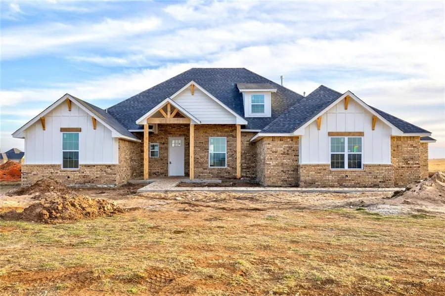 Stunning Modern Farmhouse design on 5 Acres in Piedmont Schools that will be available in 30 days!! If you're tired of being able to watch what's on your neighbors bedroom TV....it may be time to move to a new home with the perfect amount of land while still being just minutes from Deer Creek/NW OKC. This open floor plan is perfect for a family or the individual that loves to host. From the natural wood-look tile to the ship lap accents, this home has beautiful style that is just missing your personal touches. The Primary Bedroom boasts tall tray ceilings and natural light while the Primary Bathroom features double vanities, a stand alone soaking tub, large floor to ceiling tile shower, and over-sized his and hers walk-in closets with built in dresser. You will LOVE the large guest bedrooms and the flexible study space. All of this on your large, private lot creating the dream home at the dream location!