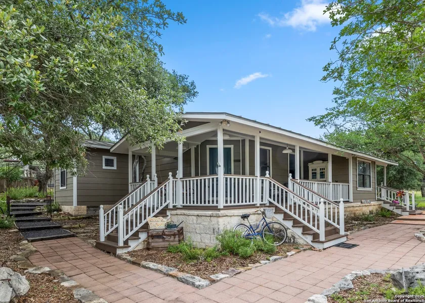 Priced at appraised value, eliminating guesswork and strengthening buyer confidence. This is a rare opportunity where value is already proven. Currently operating as a successful short-term rental, this charming 3-bedroom, 2-bath retreat offers the perfect opportunity to continue earning income from day one or to make it your personal escape or forever home. Nestled among mature trees that wrap nearly the entire 1.24-acre property for privacy and seclusion, this home welcomes you with a wide front porch and a classic porch swing, an inviting spot to sip coffee at sunrise or unwind at sunset. Inside, the layout is warm and welcoming, featuring two separate living areas that provide flexibility for entertaining guests, creating a game or media room, hosting multiple families, or offering private space for extended stays. Each bedroom is comfortable and thoughtfully arranged, while the main living spaces flow easily toward the outdoors where this home truly shines. Step into your private backyard oasis complete with an in-ground pool, ample deck space for lounging, an outdoor shower, and a pergola perfect for shaded seating, outdoor dining, or evening gatherings under string lights. The outdoor kitchen area provides the ideal setup for barbecues, brunches, or entertaining guests by the pool. A detached garage/workshop with built-in shelving adds valuable storage and workspace, while the pool house offers even more flexibility for storage, a changing area, a creative studio, or a future bunkhouse or office. Guests love the peaceful setting, the natural privacy from the trees, and the layout that allows connection and quiet moments all in the same space-one of the many reasons this home performs well as a rental. Whether you choose to continue operating it as a profitable short-term rental, use it as a personal vacation property, or move in full-time and enjoy the lifestyle yourself, this home provides versatility, comfort, and a setting that encourages relaxation and memory-making. From the front porch swing to the poolside pergola, every inch of this property invites you to slow down, stay awhile, and savor the beauty of Hill Country living.