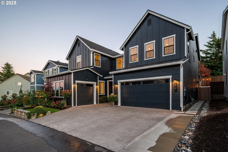 Come tour this magnificent, 2-Story, Modern Luxury Farmhouse. Located in the private, secluded Grand Vue neighborhood in Felida. Enter into a grand 2-story foyer, with high ceilings & engineered hardwood floors throughout the main floor. Open concept living. Living room features a cozy upgraded black tiled gas fireplace & upgraded wainscoting. Gourmet kitchen boasts a large island with quartz countertops, stainless steel appliances, built-in gas range, built-in microwave, & built-in oven. Modern white & black accents with upgraded lighting & gold fixtures. Main level bedroom suite offers a separate living with a full bath & walk-in closet. Main level also includes an office/den. 2nd floor loft/family room/bonus area. Primary suite features dual sinks/separate vanities, soaking tub, walk-in shower, & walk-in closet. 3 additional bedrooms on 2nd floor with full bathrooms. 2nd floor laundry room. Luxurious multi-panel stacking glass patio door opens up to a beautiful outdoor living. Covered patio with gas fireplace, string lights, allows you to enjoy every season. Upgraded large, level, low-maintenance backyard. Fully fenced, with turf/pavers. Upgraded paint/Electrical/fixtures. 2-car garage with separate 3rd car garage. Don't miss your opportunity to see this marvelous home.