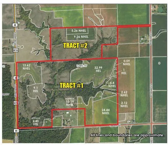 Land is located 4 miles north of Farmington on W46 OR 1 miles south of Mt. Hamill on W55, then 4 miles west on J40, then 2 miles south on 110th Avenue, then mile west on 180th Street. Watch for auction signs.