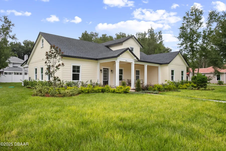 Welcome to this brand-new construction home located in the charming town of Lake Helen, known as the ''Gem of Florida.'' Situated on a .49-acre corner lot, this 4 bedroom, 4 bathroom residence blends modern luxury with timeless design. From the moment you arrive, the large tiled front porch with cedar-paneled ceiling sets the tone for the quality and craftsmanship found throughout. Inside, vaulted ceilings and upgraded Acoustic LVP flooring flow seamlessly through the open layout, while recessed lighting and modern fixtures highlight the elegant finishes. The chef's kitchen features stainless steel appliances, a pot filler above the cooktop, brushed gold cabinet accents, and an expansive island, all opening to the living area with sliding accordion glass doors that bring the outdoors in. The primary suite is a true retreat, complete with tray ceilings, a spacious 10x11 walk-in closet, and a luxurious bathroom offering a double vanity, resort-style shower, and free-standing tub, all accented with elegant brushed gold hardware. Additional bedrooms and bathrooms are thoughtfully designed to provide comfort and privacy, while a large office space filled with natural light creates the perfect setting for working from home. Designed for both everyday living and entertaining, this home includes two AC units, a three-car garage, and a cedar-paneled back porch. It is also pre-wired for a home speaker system and future pool installation, giving you flexibility to enhance your lifestyle. Every detail has been carefully considered, from the brushed gold accents to the modern light fixtures, ensuring a home that is both sophisticated and functional. Lake Helen's unique character shines through with its small-town charm, quaint shops, and peaceful atmosphere, making this property the perfect opportunity to own a truly prestigious home in one of Florida's most special communities.