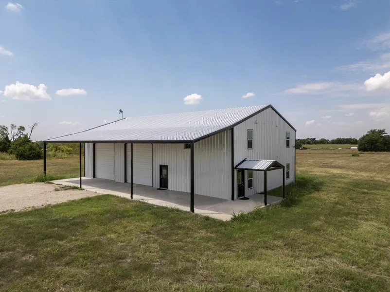 Isnt it time to give yourself the space you deserve? Welcome to your dream realized with this 2022 barndominium on 11 lush acres. It's not just a home, it's your new lifestyle!Perched high on a hill w-incredible views that make every sunrise an event and a serene sunset .Primary Bedroom down for Privacy,Mud room right off of the shop, Kitchen w-plenty of counter and cabinets and a walk in panty. Worried about Texas heat? We've got you covered - literally w-spray foam insulated ensuring cool summers and warm winters.Need space for your hobbies or work? Dive into the attached 1800 sq ft shop with 20 walls and 24 at the peak, two 16 shop doors, plus a built-in setup for a generator ensuring you're ready for anything.Got an RV? Weve got the hookups.20x70 covered porch perfect for sipping your morning coffee or hosting the grandest of Texas BBQs. Whether you're tinkering in the shop with its handy half-bath or taking in the sweeping views this property offers unparalleled freedom.