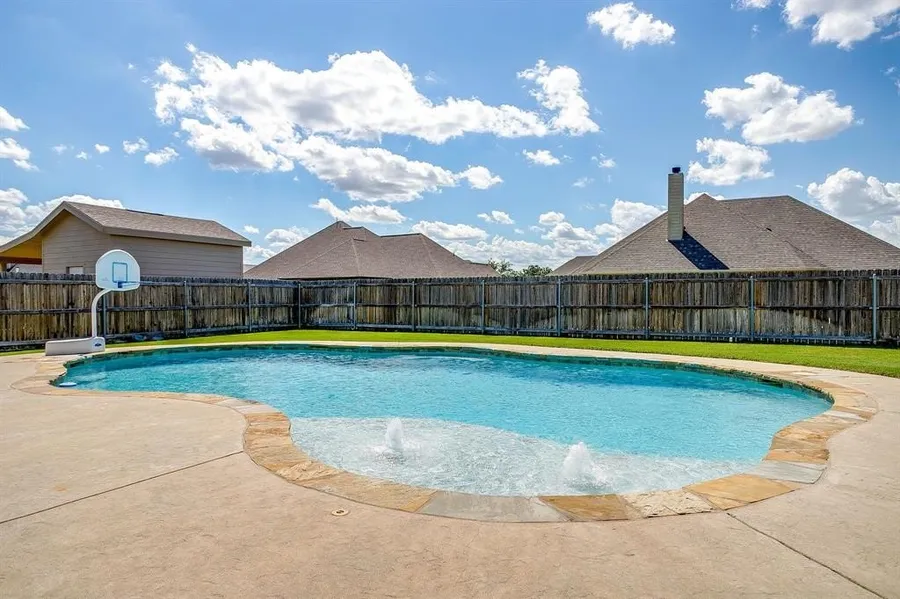 Willow Ridge – No HOA! This beautiful home truly has it all. Step outside to your private backyard oasis featuring an in-ground gunite pool with sun step, lush landscaping, full sprinkler system, and a spacious covered patio perfect for entertaining. A large storage building adds convenience, and the fenced yard provides plenty of room to play. Inside, the flexible floor plan offers 3 bedrooms and 2 baths downstairs plus a large upstairs living area or 4th bedroom with a walk-in closet and full bath. The kitchen boasts stainless steel appliances, rich knotty alder cabinets stained in walnut, granite counters, and tile flooring. The inviting living room centers around a cozy gas fireplace. With great curb appeal, an oversized side-entry drive, and a generous garage, this property checks all the boxes. Ideally located with quick access to Fort Worth, shopping, and Lake Granbury. Don’t wait—this one won’t last!