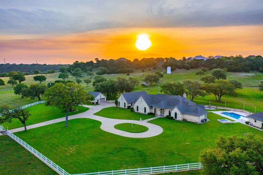 Majestic Ranch with Breathtaking Views for Miles. The High-Country Split Oak Ranch set in the Heart of Texas is 293 Acres of Pure Country Perfection that promises to sweep you off your feet from the moment you enter the front gate. Between the Serene Setting, the Incredible Old Oaks scattered throughout the Meticulously Cleared Land, the Beautiful Varieties of Wildlife, and the Unbelievable Views for Miles, this Longtime Family Estate wins your heart before even exploring up the paved roads. Spread over the acreage you will find Two Beautifully Built Custom Homes, a Waterside Party Pavilion, a RV Carport & Storage, Multiple Garages and an Industrial Workshop plus amazing amenities-a Fabulous Pool made especially for Volleyball and Pool House with a commercial griddle for that perfect burger poolside, Guest Quarters with a Walk-In Sauna, a Thoughtfully Constructed Dog Run for your fur babies, and a Garage/Workshop just to name a few. An Amazing Gravity Fed Underground Valve Controlled Chain of Livestock Tanks helps paint the perfect Ranch Setting. A Livestock Pen, a Hidden Water Spring, and an Old West Stagecoach Trail bordering the property are just a few of the bonuses you will find out on your adventures. With Endless Possibilities, The High-Country Split Oak Ranch is the closest to Texas Paradise as you will ever find.
