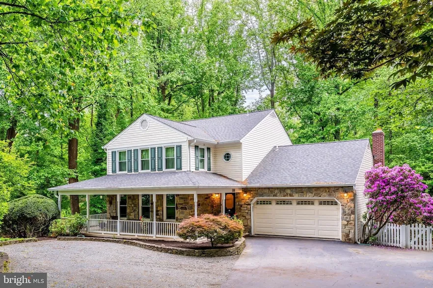 OPEN HOUSE CANCELLED - OFFER ACCEPTED ON 7-19. 5 bedroom colonial tucked away on a private 1 acre lot surrounded by trees. Gourmet kitchen w/ center island overlooking sunroom with skylights. FR w/ vaulted ceilings and wood burning fireplace w/ custom mantel. Upper level with 3 spacious bedrooms, renovated hall bath, plus expansive primary suite with walk-in closet. Completely re-designed luxury primary bath. Fully finished lower level with 5th bedroom, rec room, den/office, & storage. Unbelievable backyard with screened porch, multi-level deck, custom patio with built-in pizza oven. Inviting wrap around front porch overlooking garden.