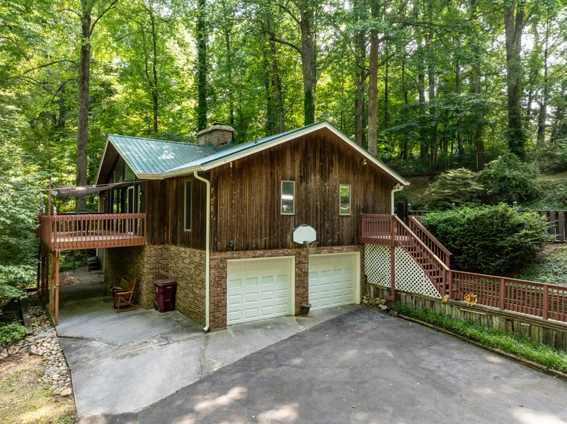 Step into a world of comfort and privacy in this delightful home, just a stone's throw from ETSU, the VA Hospital, and the bustling downtown of Johnson City. With three bedrooms and two bathrooms upstairs, and a bonus suite with an office and fireplace downstairs, this home is designed for both relaxation and productivity. The living room, with its chalet-style architecture and expansive bookcase, is the perfect place to unwind, while the secluded in-ground pool offers a refreshing escape. The deck provides a peaceful spot to enjoy the sounds of the nearby creek, and the 3.8 acres of unrestricted land invite endless possibilities for outdoor activities or future projects. Recent updates, including a new roof, pool liner, HVAC system installed between 2020 and 2022, add to the home's appeal. This property is not just a house; it's a canvas for your dreams. Book your visit and let the adventure begin!