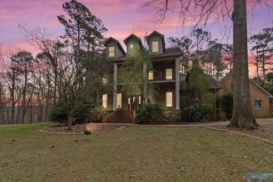 Beautiful executive home located across the street from Lake Guntersville in Scottsboro; 7.5 acres and backs up to hundreds of acres of TVA land for public use. Outdoor area with fireplace and inground 20X40 pool is perfect for entertaining. Home features 3 bedrooms and 4 baths. Downstairs office could be a 4th bedroom. Must see!!