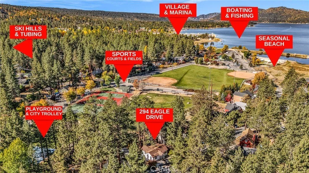 All available within 2 blocks from the property: large park with trees and open meadows, 2 playgrounds, swimming beach & fishing lake, sports courts & fields (sand volleyball, basketball, tennis, pickleball, softball, baseball), and free city trolley to the new Big Bear Zoo, 9-Hole Golf Course & Clubhouse, Big Bear Village, Bear Mountain & Snow Summit Ski Resorts, Marina, the North Shore & more! Host visitors or personally enjoy one of Southern California's only 4-season resorts with watersports - boating, fishing & swimming; snowsports - skiing, sledding, tubing, snowboarding, skating & snowshoeing; mountain sports - biking, birding, & hiking; movie theater, music venues, restaurants, shopping, and year-round events & festivals. Per appraiser, this property is unmatched in upgrades compared to other similar cabins throughout Big Bear Lake. View and make your offer ASAP! This property will sell quickly.