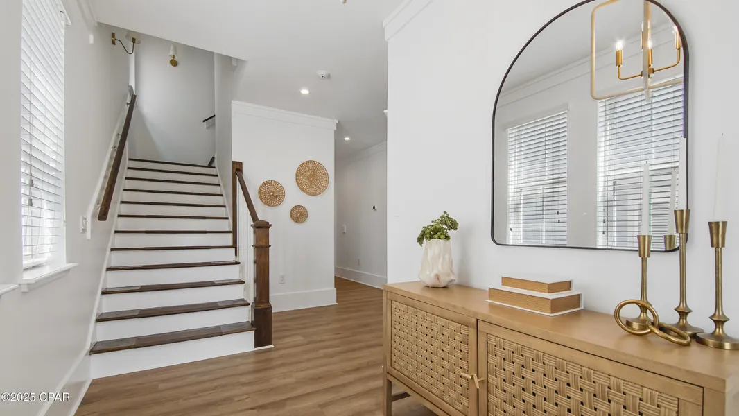 Experience the best of Blue Mountain Beach in this stunning 3,851 sq ft MODERN retreat in Highland Parks. Spanning three floors, this 4-bed, 3.5-bath home offers gulf views from the primary suite and designer furnishings valued over $100K, including Arhaus beds and couches. The main level features an open-concept layout with a versatile BUNK ROOM duo, perfect for hosting. A designated elevator shaft allows for future mobility upgrades. Enjoy outdoor living with a covered grilling area and NEW paver patio, ideal for al fresco dining. The 2-car garage and golf cart make beach trips a breeze. Just steps from the resort-style pool, enjoy the lagoon oasis with a spa, grilling area, and gulf lookout tower. With low HOA fees of $635/quarter, this home offers exceptional value as a second home or investment property.