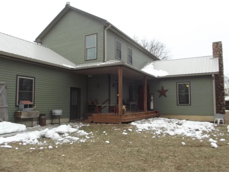 This beautiful, newer 1 1/2 story home on 35 acres boasts custom cabinets, large rooms, wood floors, full walk out basement, 3 outbuildings, and a small home on the property.