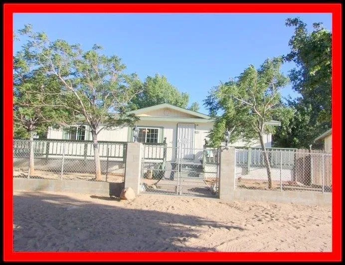Address says Lucerne Valley but feels like Apple Valley. Located by border of Apple Valley and Lucerne. Beautiful 5 ACRE Oasis! This 3 bed, 2 bath double wide has a full length porch/deck, spacious kitchen with separate laundry, and NEW double paned 'new construction'windows! Remodeled Master bathroom, new 'master cool' energy efficient AC unit, freshly painted exterior. No water bill here! Enjoy your own well with 5500 gal. tank, 60 gal. pressure tank, 1 1/2hp pump, new PVC pipe with stainless steel connectors. 600 square foot garage/workshop! Enjoy the private garden area and approx. 80 mature trees on this view lot. Enclosed, shaded dog run. LED yard lights come on automatically at sunset. Approx. 2 1/2 acres are fenced with 5 ft chain link and additional fencing in the front of the house and the back of the house/garage has 6 ft fencing to keep your pets secure. Separate garden area is totally secure to keep pets and rabbits out of the area. Hummingbirds visit daily. Gorgeous mountain and desert views in all directions. This home AND property are immaculate. You must see it to believe it!