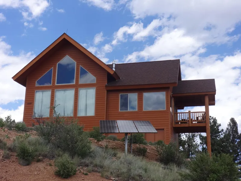 One of a kind beautiful, high quality constructed newer home on 49 acres with stream bordering National Forest! The highly efficient home was constructed with green built structural insulated panels and is powered by active solar panels with a generator backup and propane. The stunning interior features a floor to ceiling see through stone fireplace with log mantel, vaulted tongue-n-groove ceilings with 12 log beams, hickory floors and cabinets, log stairs and trim, six panel doors, custom light fixtures as well as abundant windows that flood the home with natural light. Stunning 360 views, abundant wildlife and the utmost in privacy yet just minutes from downtown Woodland Park.