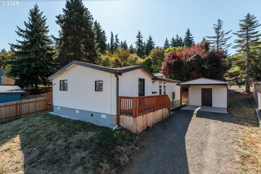 This manufactured home offers beautiful Columbia River views, including sightlines to the Lewis and Clark Bridge spanning between Rainier, Oregon and Longview, Washington. Inside, you'll find 1,264 square feet of living space with three bedrooms and two bathrooms. The home has been updated with a new FURNACE, flooring, carpet, interior and exterior paint, and modern fixtures. The open living room features a woodstove for warmth and plenty of windows that bring in natural light, with a slider door leading to one of two decks. The kitchen includes stainless steel appliances and a convenient buffet area with an eat-up nook. The primary bedroom offers backyard access, a bathroom with a soaking tub, and a walk-in closet. Two additional bedrooms and a full guest bathroom provide space for family or visitors. A bright laundry room and mudroom round out the floor plan. Outside, a new carport and outbuilding offer additional storage. The property's location provides access to water activities including boating, kayaking, and fishing on the Columbia River. Grocery Outlet and everyday services are just minutes away in Rainier, while Longview, Washington offers additional shopping, dining, and hospital facilities nearby. Rainier City Park provides local recreation, and the area is served by community schools including Rainier High School. Rainier is a small riverside community along the Columbia River where walking trails and local events are part of the lifestyle-including a notable Fourth of July fireworks show on the river. Portland sits about an hour away, as does the Oregon Coast. Schedule a tour!