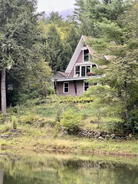 Nestled in a peaceful community, this charming waterfront A-frame home offers 1,223 sqft of cozy living space with 2 bedrooms and 1 bathroom. Enjoy morning coffee on the upstairs balcony or relax on the deck overlooking a private, shared pond. With 2.51 acres and a shared interest in 5.4 additional acres abutting the Green River, you're surrounded by nature in your own private little community. Three sheds provide plenty of storage, and you'll stay cozy year-round with a wood stove or the propane heaters. This is the perfect spot to unwind and recharge.