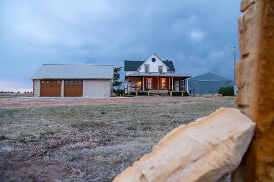 This is your opportunity to live in a stunning custom country home nestled at the end of a mile private driveway with blacktop highway access! This rural Rush County, KS property offers incredible seclusion but is still close to town and less than a 30 minute drive to both Hays and Great Bend two of the nicest cities in all of Western KS. The two-story country home has 2,099 sq feet of incredible living space, including 4 bedrooms, 2 baths. This one-of-a-kind property is a perfect blend of country living and modern refinement. The home has been updated with beautiful cabinetry, granite countertops, stainless steel appliances, and hardwood and tile floors throughout the entire home.The primary suite is on the main floor as well as 3 bedrooms in the upstairs living space. All electrical, plumbing, and HVAC has been replaced in recent years as well as the windows, doors, roof, and siding. Beautiful woodwork throughout the entire home adds to its rustic charm.The 50 x 64 metal shed features a full concrete floor for top notch storage and work space while also featuring an enclosed workroom man cave area to support any of your favorite hobbies or work requirements. Multiple other small storage buildings are also available on this property.When you're not enjoying the interior of your stylish country home, you can enjoy sitting out front on the beautiful wood deck and taking in all of the Western Kansas nature and wildlife at its finest! The fertile cropland acres, CRP, and miles of trees, rows, and thickets offer shelter, food, and attraction for local whitetail deer, turkeys, and upland birds roaming the area! The owners enjoy watching the wildlife eat from the wildlife feeder they have placed within a stone's throw of the house. You will be very surprised to see the animals that have frequented the feeder right in the farmyard! in recent years. An avid outdoorsman will keep busy day after day walking the CRP and miles of cedar and thicket rows for upland birds. This property is absolutely loaded with pheasants and quail! This is a trophy whitetail and turkey area as well as evidenced by the Sellers trail cam photos. Check them out!Simply put, if you are looking for an incredible country home, farmstead, and high-quality land to support it Welcome to your new home!