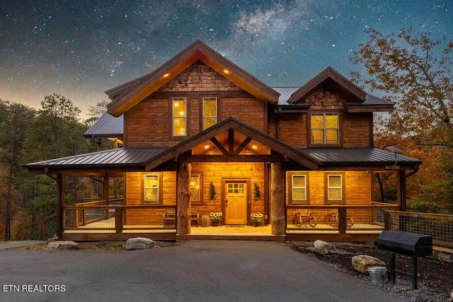 Discover this stunning mountain retreat located in the desirable Laughing Pines subdivision. This custom-built cabin combines modern luxury with rustic charm, offering the perfect getaway and a strong income-producing investment opportunity. Step inside to find an open-concept main level featuring a gourmet kitchen with granite countertops, stainless steel appliances, and a spacious island with seating, seamlessly flowing into the dining area and cozy living space. Warm wood finishes, custom ceilings, and high-end lighting create an inviting atmosphere throughout. After a day of exploring the Smoky Mountains, unwind in the covered outdoor hot tub, gather by the fire table on the deck under star-filled skies, or simply relax and enjoy the serene mountain views. This cabin comfortably accommodates family and guests while offering all the sought-after amenities of a high-performing short-term rental, including: Modern kitchen with island seating Vaulted Ceilings Game room with bar, foosball, and air hockey Spacious decks with fire table, outdoor dining, and a hot tub Minutes from Pigeon Forge attractions, shopping, and dining Whether you're looking for a mountain escape or a high-yield investment property, this Laughing Pines cabin is the perfect blend of comfort, style, and profitability. Buyer and buyer's agent are responsible for verifying all details, including square footage, property features, restrictions, acreage and availability, to their own satisfaction prior to closing.