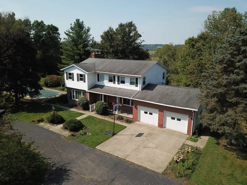 Real estate features a quality custom-built brick & vinyl home w/ attached 2-car garage. Home has large kitchen w/ appliances & bay windows, formal dining room, formal living room, family room w/ stone fireplace & wood burner, half bath, and laundry on the main floor. Second level features a master bedroom w/ full bath, balcony & large walk-in closet, 3 additional bedrooms, and full bath. Basement is partially finished with additional living space for in-law suite with kitchen, living room w/ wood-burning fireplace, full bathroom, and guest room. Propane FA heat, central AC, 200-amp breaker electric, well, and septic. Property also features an in-ground pool, pool house, 24x48 barn w/ concrete floor, 2 additional horse/beef barns, and concrete mobile home pad w/ well and septic. All this on 48 gently rolling acres. Acreage having good elevation and bottom land. Majority pasture and balance is wooded. Setting back a private farm lane. Taxes are $2,349 per half year. Wayne Co. parcel #56-01492.000 and #30-01314.001