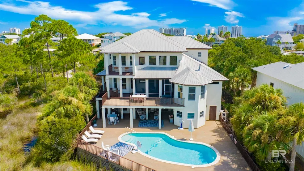 Gated and secure, this waterfront property offers the utmost privacy in one of Alabama's most coveted island communities--truly a rare and prestigious offering. Nestled aside St. John Bayou on Ono Island, this stunning residence features a well proportioned floor plan, spectacular sunsets, 80' of private white sandy beaches, double water frontage, close proximity to The Pass and Ono Bridge all on a a quiet cul-de-sac street. At the heart of the home lie open-concept family and kitchen areas where stunning views serve as the backdrop to daily life. The gourmet kitchen complete with a breakfast area and formal dining room is ideal for casual dining or entertaining. The main level also encompasses a soaring entryway, living room, wet bar, adjoining library and multiple verandas and patios. The main floor primary suite is truly a sanctuary with a private sitting area with fireplace overlooking the bay and a spa-inspired bathroom that includes a freestanding soaking tub, separate shower, generous dual vanities and walk-in closets. With three ensuite bedrooms and loft den upstairs and a spacious two-bedroom first-floor POOLside apartment including covered private entry below, there is abundance of space for both family and guests. Home is serviced by an ELEVATOR and interior and exterior staircases. Exceptional views and only moments from the Gulf. See Zillow and for more information. Buyer to verify all information during due diligence.