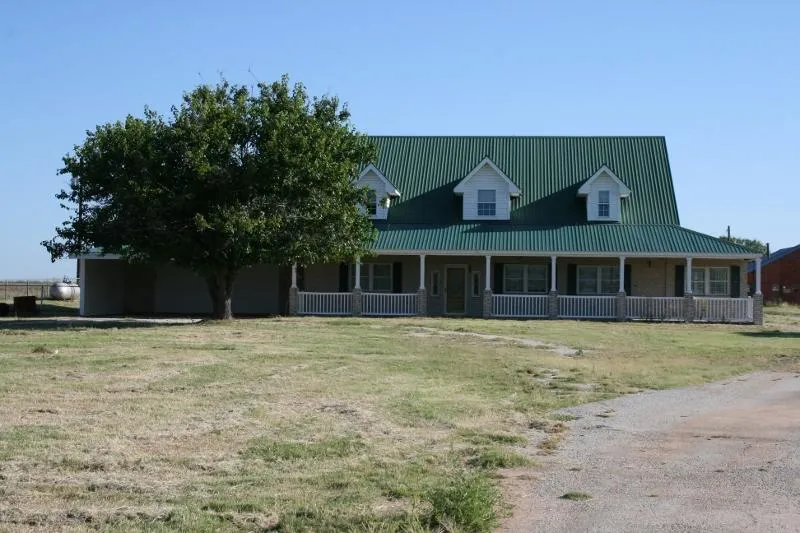 This two story quality home has many extras, and custom features. The metal roof is a custom feature that adds value to this house. The floors are stamped and stained concrete floors that look like stone. There is a fireplace opening in the downstairs living room, upstairs living, and second floor bedroom. The second floor bedroom also has a nice balcony. The kitchen has a double oven, walk-in pantry, large island, work desk area, and a large area for the dinning table to give the open concept look. The sun room has a sink, hot tub, and entrance to the storm room. The front and back porch are large and covered. You will also like the textured walls, and the vaulted ceiling with the woodwork and wood beams. There is also a covered area that is attached to the garage and house for extra parking. The barns, two ponds, fencing, creek, cross-fencing, sheds, and backyard fence make this a special property. You are only 9 miles West of Olney, and approximately 15 minutes from Graham.