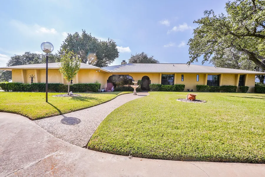 Nestled among huge sprawling Live Oak trees, is a 4000sft 4/3 custom designed home complete with a 2000sf work shop/RV garage, 1000sf bunkhouse with full kitchen and bathroom, 1000sf detached game room with half bath, bird aviary, and green house. Established fruit trees, pecan trees, swimming pool, live oak surrounded patios with gardens. Excellent wildlife raised on property to convey.