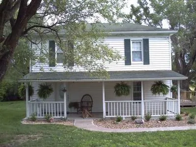 Charming old farmhouse on 3 Acres, 3 bedrooms, new interior paint, ceramic tile, laminate floor & light fixtures, large back deck, deatched garage, pond, $149,900.