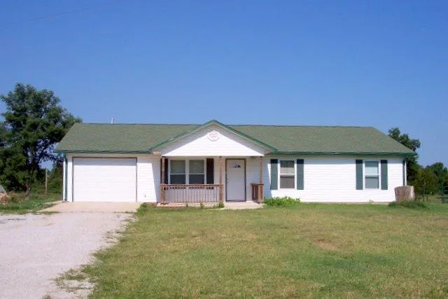Built in 2007 on 3 acres m/l, this house features oak cabinets and trim, tile & carpet floors, 1 car garage, central heat and AC, large master bath w/ bath, walk-in pantry, enclosed relax/game room, covered front porch, and ceiling fans throughout!