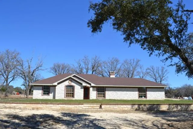 This is a country family's dream! This beautiful white rock home is perched upon a elevated front yard and situated on 3 +/- partially treed acres. There is also a 30x28 shop located on the property that has a roll up door and a walk through. The shop is perfect for a home based construction or mechanic business. It's even great for the hobbyist! The land is serene-like with large towering trees scattered throughout the property. The circle drive is abundant in trees which gives some privacy from the County Road in front. The home its self is designed in a simple, rustic Texas design. The bright white rock faade around the perimeter of the home draws the eye in then the brown brick trimmed windows gently adds contrast to the exterior. Inside the home, the living area and dining area is open to the kitchen but it separated by breakfast bar. The living room features a beautiful white rock corner fireplace that matches the exterior of the home and has hardwood flooring to offset the colors. The dining area also has hardwood flooring and a beautiful Texas rustic hanging light fixture. The dining area is open to the kitchen but its separated by a breakfast bar. The kitchen has beautiful colors of black granite on the countertop and the cabinetry is of an oak color. The stainless appliances accentuate this room well. The three bedrooms are all of neutral color and have mauve colored carpeting. The master bedroom has a private bath which has a full sized tub. The unique feature of the master bath is the high-legged vanity. The black granite countertops continue in the two bathrooms. The guest bathroom also has full tub with shower. The great thing about this home is that it has a large bonus room which could be used as is, as a game room or it can be used as a family room. This property is perfect for those wanting to raise small 4-H and FFA projects! Come take a look at this one as it will not last long.