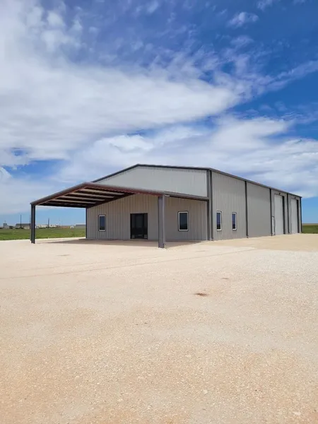 This is a 3 Acre parcel with a caliche pad surrounding the 45x100 building and a 20x45 covered parking area out front. This building has 3 large bay doors for pulling in equipment. This property is ready for a buyer to make it their own.