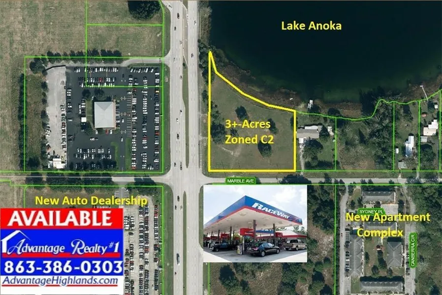 Prime 3+-Acre Commercial Hwy/Lakefront Corner/Full Median Turn Site! Ideal ALF, Hotel, Medical or Office/retail Apts close to AdventHealth Hospital, Raceway C-Store next door & New Auto Dealer across Hwy. This site would work well for restaurant, boat dealership or combination retail/apartments.