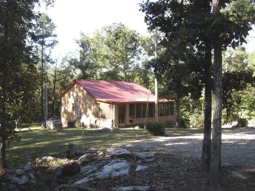 WHITE RIVER MOUNTAIN CABIN ON 3 ACRES A perfect get-away cabin that is high up over the White River at Mount Olive, Arkansas. The 3 acres and home has a beautiful landscaped yard and is secluded. It comes with a common access to a boat launch on the river, plus it is only 2 miles from the Arkansas Game and Fish Commission ramp at Mount Olive access area. This is a very clean cabin with beautiful floors and knotty pine tongue and grove walls and ceilings. The cabin has one good size bedroom and a sleeping area on the screened in front porch that is 10 x 30 feet. Property comes with central heat and air, a refrigerator, cook stove and washer & dryer. Priced at only $79,500