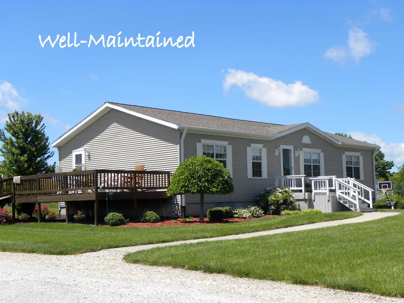 Meticulously maintained with upgrades including newer roof 2010, over-sized gutters on home, newer kitchen counter-tops, faucet/sink, dishwasher, beautiful bowl sinks in all bathrooms including double vanity in master that has newer shower door plus a garden tub, large walk-in closet in master, open living room/dining area, main level laundry/mud room with wheel-chair ramp accessible deck access, 30x70 outbuilding, concrete floor, electricity, propane, outside water spigot, 10 ft. doors, plus drive-thru bay, on basement with 2-car garage on walk-out side, generator plug on back of home, 2x6 construction, canning/gardening shed with access to water and propane, very level 3 acres with perfect area for garden.