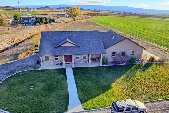 3 acre parcel north of Fruita with a 4 bedroom stucco ranch style home. Kitchen offers granite countertops, stainless appliances, custom cabinets, pantry & breakfast bar. Rocked gas log fireplace & hearth in living area. Covered patio, fenced backyard & RV parking. Circle driveway lends plenty of parking + there is a 3-car garage.