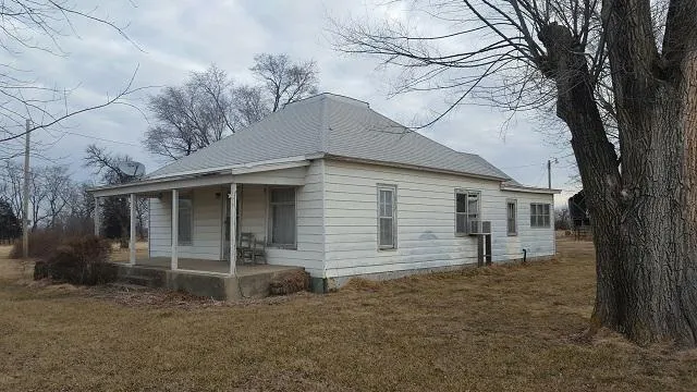 Great country Starter Home! 2-3 Bedroom 1 bath Bungalow on approximately 3 acres m/l. Mud room. Very well insulated. Propane heat. Window Unit. 2 Car detached garage. Old Barn. Machine shed. Pipe Corral. Rural Water Meter.
