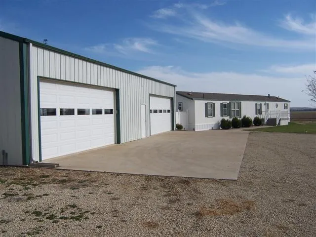 Property Includes 2 - 40x60 Buildings. 1 is insulated both have concrete floors & electricity. 1 bldg has an airplane hanger door. New fence, gate to driveway. Well cared for property. Manufactured Home. Close To blacktop road. Lots of potential for storage or at home small business.