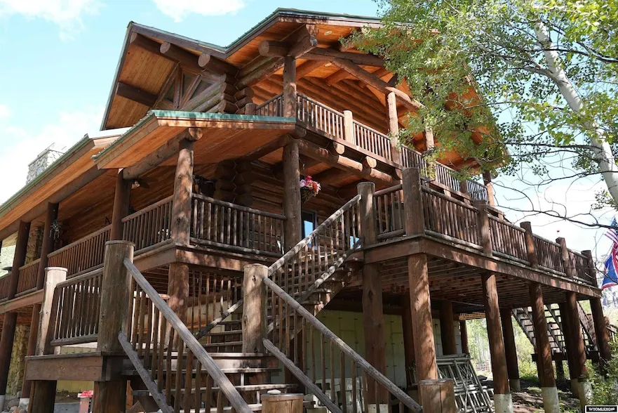 This log home is set in a tranquil natural environment. The main house features 3 bedrooms and 3 bathrooms, an expansive kitchen with a breakfast nook and two large seating areas each with its own fireplace. The high, vaulted ceilings add to the homes grandeur, and the den off of the primary bedroom offers a private retreat. Additional amenities include a large garage with ample storage, radiant heated floors and a utility room with a washer and dryer. With its spacious layout, rustic charm, and modern amenities, it offers a perfect retreat surrounded by the beauty of aspen trees, the Bridger National Wilderness and Boulder Creek. There are outdoor features like a fire pit that enhances its appeal, making it not just a home but an inviting escape into nature. The property sits on 2.37 acres of beautiful woodland, providing a sense of seclusion and tranquility. Along with the main house, there are three guest cabins, perfect for hosting visitors. This home offers a perfect blend of rustic charm and modern comfort, creating a truly wonderful place to retreat.