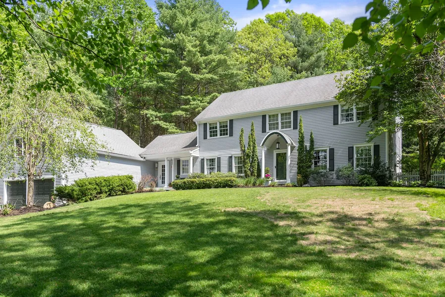 Much-admired contemporary colonial, perfectly sited on a spectacular two-plus acre corner lot offers incredible spaces to entertain as well as spacious rooms in which to work and retreat. Down the street from local treasure Powisset Farm and Noanet trails, 3 Powisset offers quick access to Westwood, Rte 109, and I-95. Charming bluestone path and welcoming mudroom lead to eat-in-kitchen w/bay window, walk-in pantry, and enormous island. Family room with Palladian window and fireplace features slider to large deck and prettiest fully fenced yard. Private study, living room with built ins, formal dining room and powder room complete the first floor. Huge vaulted ceiling bonus room with ¾ bath perfect for watching the game, playroom or additional home office. Cathedral ceiling primary bedroom features walk-in closet, balcony and marble bath. Two generous bedrooms and family bath with double vanity occupy the “west” side second floor. Dreamy oversized walk-in closet occupies fourth "bedroom." WOW!